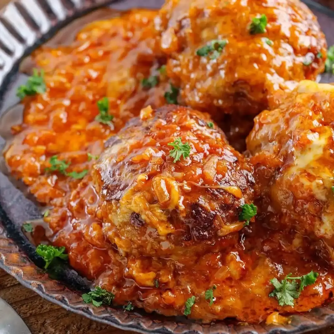 チーズたっぷりトマトソースの肉汁ハンバーグ