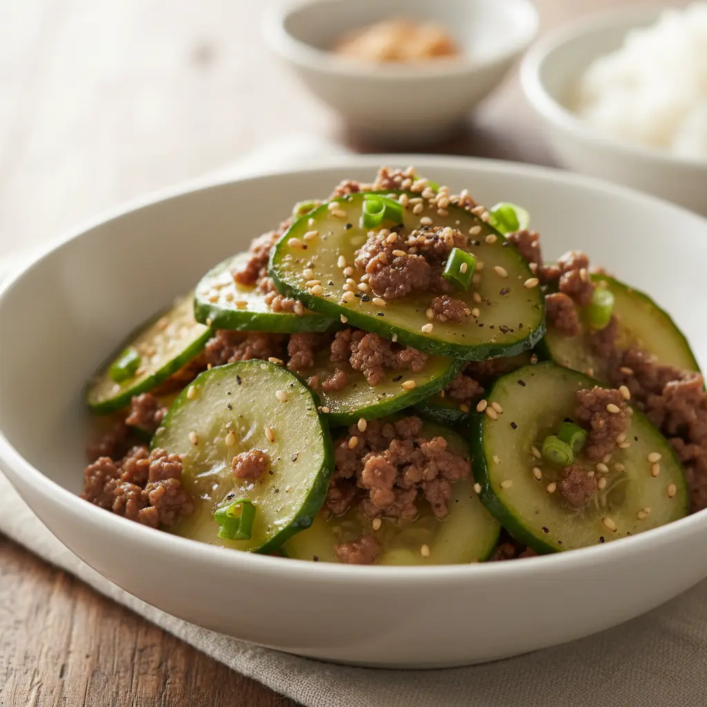 오이를 얇게 썰고 소금에 절여 물기를 충분히 짜내면 아삭하고 맛있는 식감을 즐길 수 있습니다.소고기는 다진 것 또는 채 썬 것 모두 가능하며, 취향에 따라 선택할 수 있습니다.미리 양념해 둔 소고기를 사용하면 조리 시간을 단축할 수 있어 바쁜 날에도 좋습니다.
