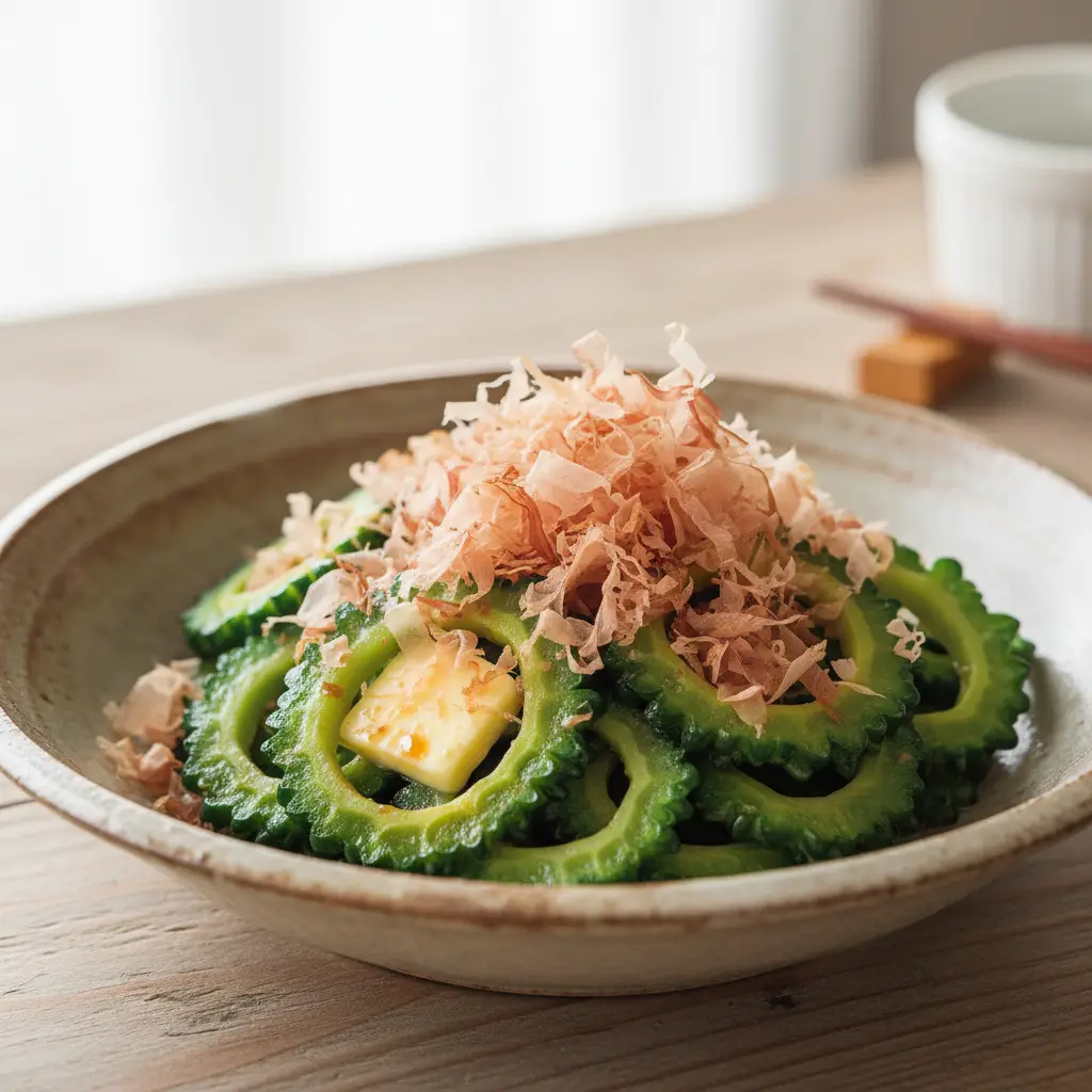 這道奶油柴魚炒苦瓜,苦味獨特的苦瓜搭配風味濃郁的奶油和柴魚片,是一道令人回味無窮的菜餚。作為餐桌上的一道小菜或下酒菜都很適合,簡單快速,是忙碌生活中的好選擇。若想進一步減少苦瓜的苦味,可在切片後用鹽輕輕抓揉,靜置約5-10分鐘,再用清水沖洗乾淨並瀝乾水分。